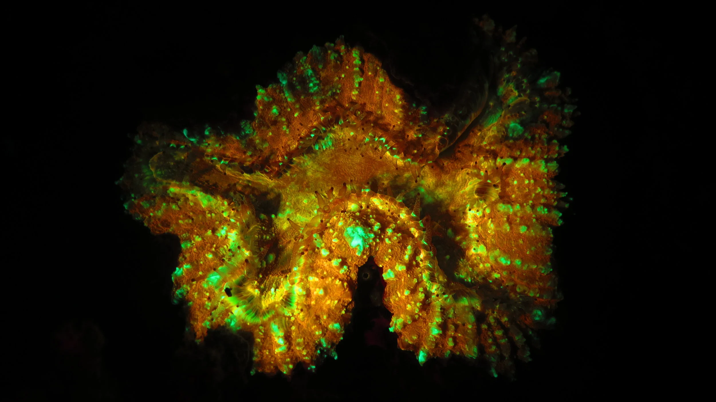 Many corals, creatures and fish absorb high energy light and emit it as low energy light, which is what we see when fluo diving.